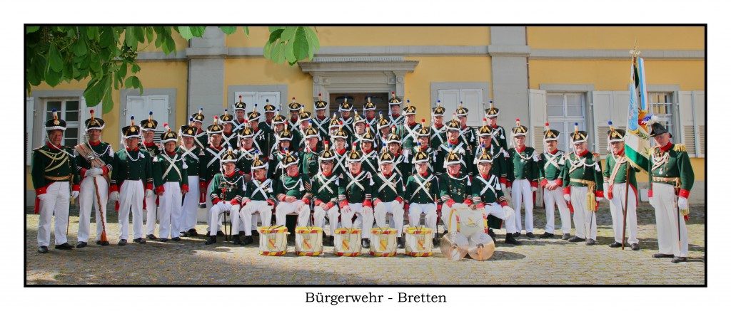 Am 20. Januar 1824 genehmigte und verlieh Großherzog Ludwig zu Baden die Statuten für das „uniformierte Bürgermilitär zu Fuß in Bretten“. Der Zweck des neuen „Corps“ wird in den Statuten wie folgt beschrieben: „… Erhöhung der Würde und Feyer der Feyertage und anderer Feste, sowie der städtischen Volksfeste, namentlich des Gedächtnistages der siegreichen Abschlagung der württembergischen Belagerung unter Herzog Ulrich durch Brettens Bürger im Jahre 1504, sowie die Abwehr der Aufständischen im Bauernkrieg 1525“ (zeitgenössische Schreibweise).