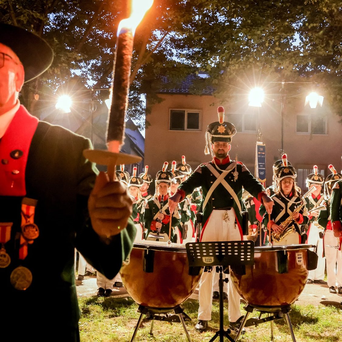 Für den Musikzug der Historischen Bürgerwehr Bretten ist der Große Zapfenstreich stets ein außergewöhnliches Ereignis und wird nur bei ausgewählten Veranstaltungen aufgeführt. Der Begriff „Zapfenstreich“ entstand um die Wende zum 16. Jahrhundert. Wenn die Landsknechte abends in den Schenken und Marketenderzelten saßen, erschien zu einer festen Stunde der Profos – ein Militärpolizist – gefolgt von je einem Pfeifer und Trommler, schlug mit dem Stock auf den Zapfen des Fasses und setzte dem Trinken und Würfeln für diesen Tag ein Ende. „Zuwiderhandlungen“ gegen diesen musikalischen Befehl, der von den Landsknechten „Zapfenschlag“ genannt wurde, führten zu harten Bestrafungen.